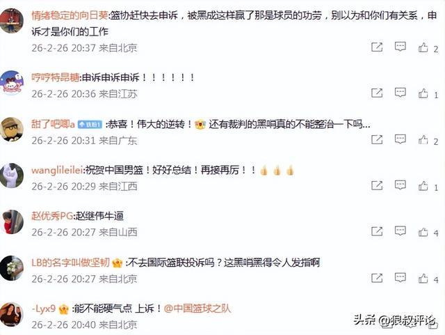 篮协赶快去申诉,被黑成这样赢了那是球员的功劳,别以为和你们有关系,申诉才是你们的工作。