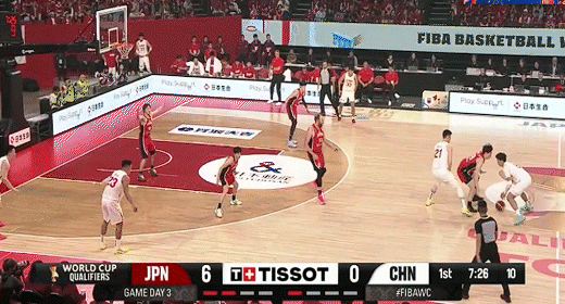 高诗岩借掩护三分追平比分!中国男篮49-49日本